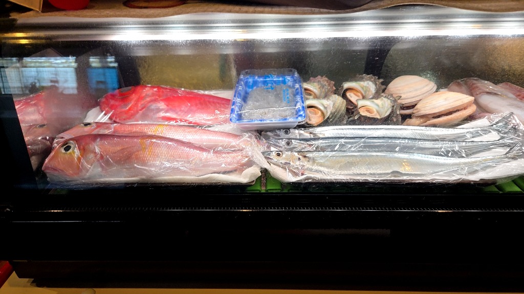 本巣市居酒屋本日入荷の魚たちです、金目鯛、甘鯛、サザエ、スルメイカ、おおアサリ、さんま、生しらすです、どれも新鮮で美味しくオススメです、グループの方、1人飲みの方にもぜひ味わって頂きたい面々です。