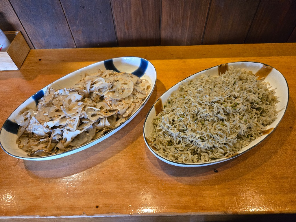 本巣市居酒屋本日紹介は本日仕込みのおばんざい2品です、れんこん金平、ちりめん山椒です、金平はシャキシャキ感、ちょっぴり一味の利いた仕上がり、ちりめん山椒は山椒の実を加えピリッとどちらもお酒のお供に美味しくオススメです、グループの方、1人飲みの方にもぜひ味わって頂きたい面々です。