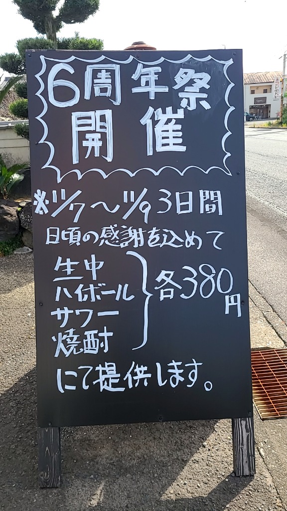 本巣市居酒屋いよいよ明日から3日間週年祭開催します、日頃お客様に可愛がって頂きありがとうございます、感謝を込めて生中、ハイボール、サワー、焼酎380円にて提供させて頂きます、その他料理も揃えてます、お越し頂けると幸いです、宜しくお願いいたします。