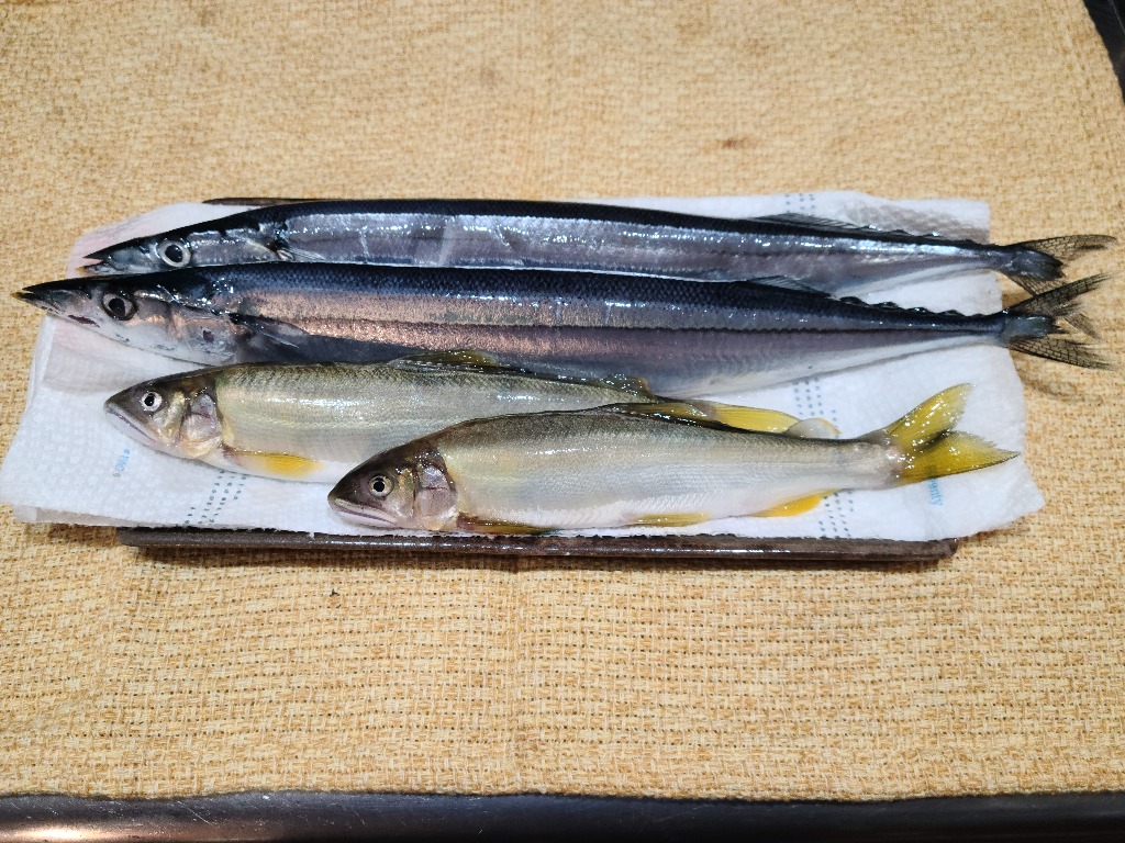 サンマ、鮎です、いよいよサンマの季節到来、昔は安価な魚、今では高級魚に、中々手の出ない魚になって来ました、塩焼きお刺身にします、鮎は塩焼きに、お酒のお供に美味しくオススメです、グループの方、1人飲みの方にも是非味わって頂きたい面々です。