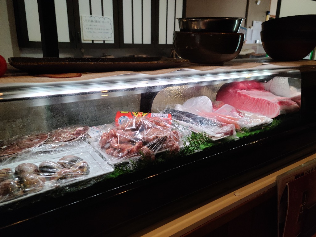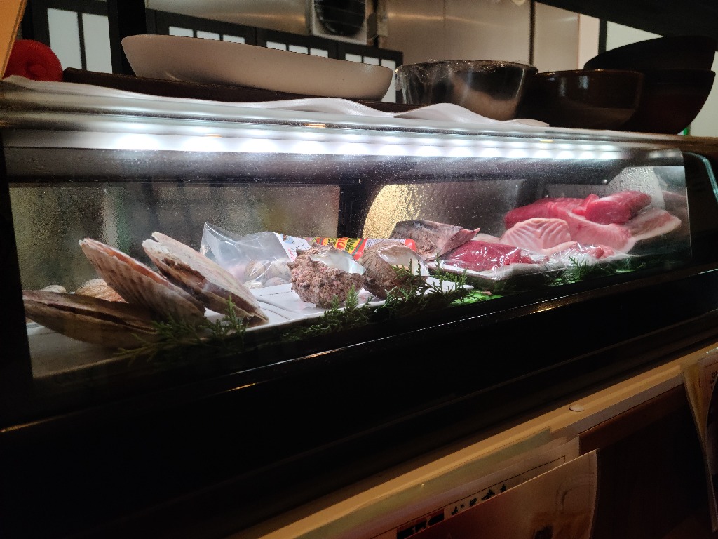 本巣市居酒屋本日のネタケースです。お刺身本マグロに始まり、真鯛、シマアジ、ヒラメ、サーモン、マダコ、たたき用鰹、塩ゆでにクリガニ、うずら卵、酒蒸しに蛤、バター焼きホタテ殻付きです、どれも新鮮美味しくオススメです、グループの方、1人飲みの方にも是非味わって頂きたい面々です。