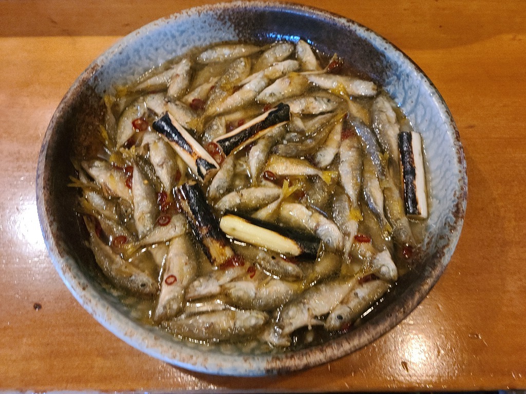 本巣市居酒屋本日紹介はおばあさんの一品マメアジ南蛮漬けです、前回紹介は稚鮎南蛮でしたが今回はマメアジで作りました、お酒のお供に美味しくオススメです、グループの方、1人飲みの方にも是非味わって頂きたい一品です。