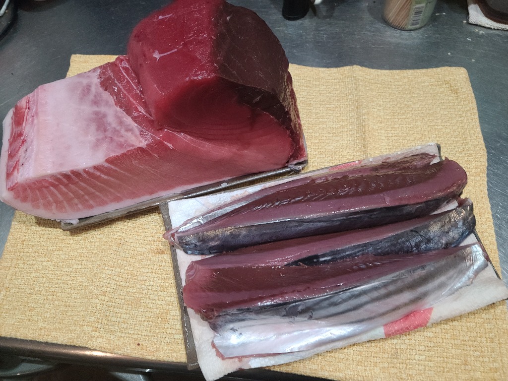 本巣市居酒屋本日紹介は本日入荷の本マグロ、鰹です、本マグロはお刺身に、鰹はたたきにしお客様の注文後に炙り、炙りたての美味しい鰹をネギ、にんにく、ミョウガを添えポン酢で、お酒のお供にオススメです、グループの方、1人飲みの方にも是非味わって頂きたい面々です。