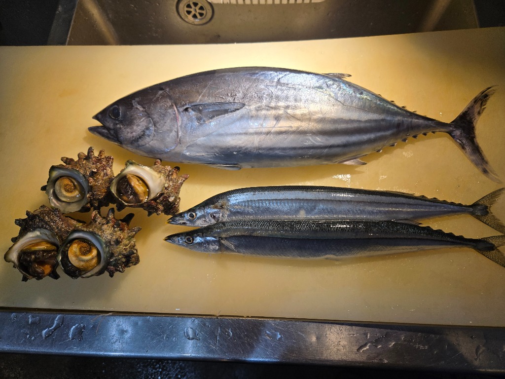 本巣市居酒屋本日紹介は本日入荷の魚たちです、カツオはタタキ、お刺身に、さんま塩焼きに、サザエつぼ焼きにします、どれも新鮮で美味しくオススメです、グループの方、1人飲みの方にもぜひ味わって頂きたい面々です。