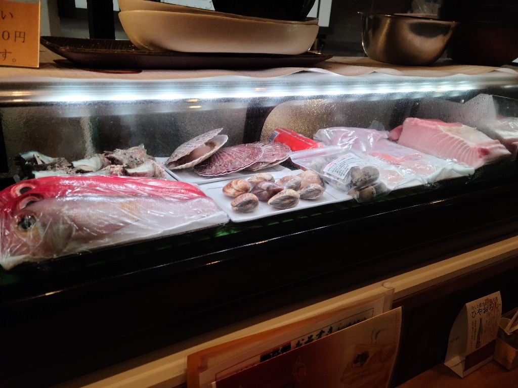 本巣市居酒屋本日のネタケースのめんめんです、お刺身は本マグロ、真鯛、シマアジ、ホタテ、サーモン、ヒラメです、握り用和牛三角バラ、軍艦用うずら卵、明方ハム、酒蒸しには蛤、バター焼きにから付きホタテ、つぼ焼き用サザエ、焼き魚、煮魚用に甘鯛、金目鯛です、どれもお酒のお供に美味しくオススメです、グループの方、1人飲みの方にも是非味わって頂きたい商品です。
