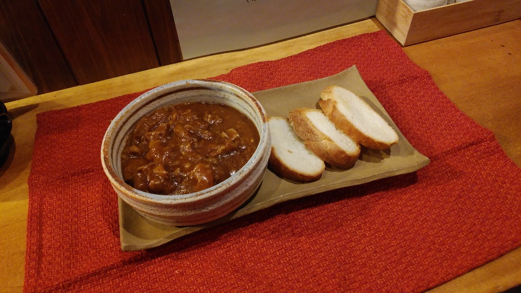 本巣市居酒屋本日紹介は定番メニューの牛スジシチューです、和牛スジを赤ワイン、にんにく、人参、玉ねぎ、りんごで柔らかくなるまで煮込み、デミグラスソース、当店調味料で仕上げました、パケットと一緒に召し上がって頂くと美味しくオススメです、グループの方、1人飲みの方にも是非味わって頂きたい一品です。