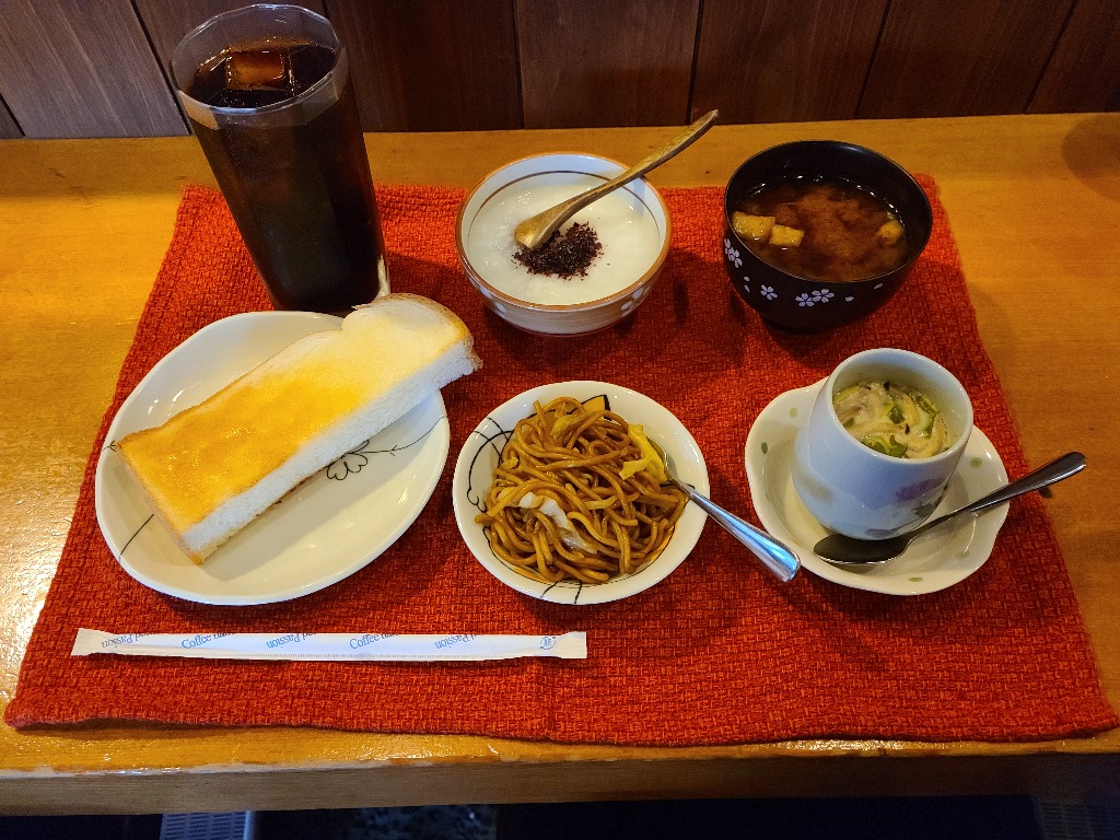 本巣市居酒屋本日紹介は午前の部モーニングです、朝7時から13時までモーニング提供しています、コーヒーにトースト、玉子料理、サラダ又は焼きそば、お粥、味噌汁が付き450円アイスは+30円です、お腹がふくれて美味しくオススメです、グループの方お1人様でも気軽にお越し下さい。