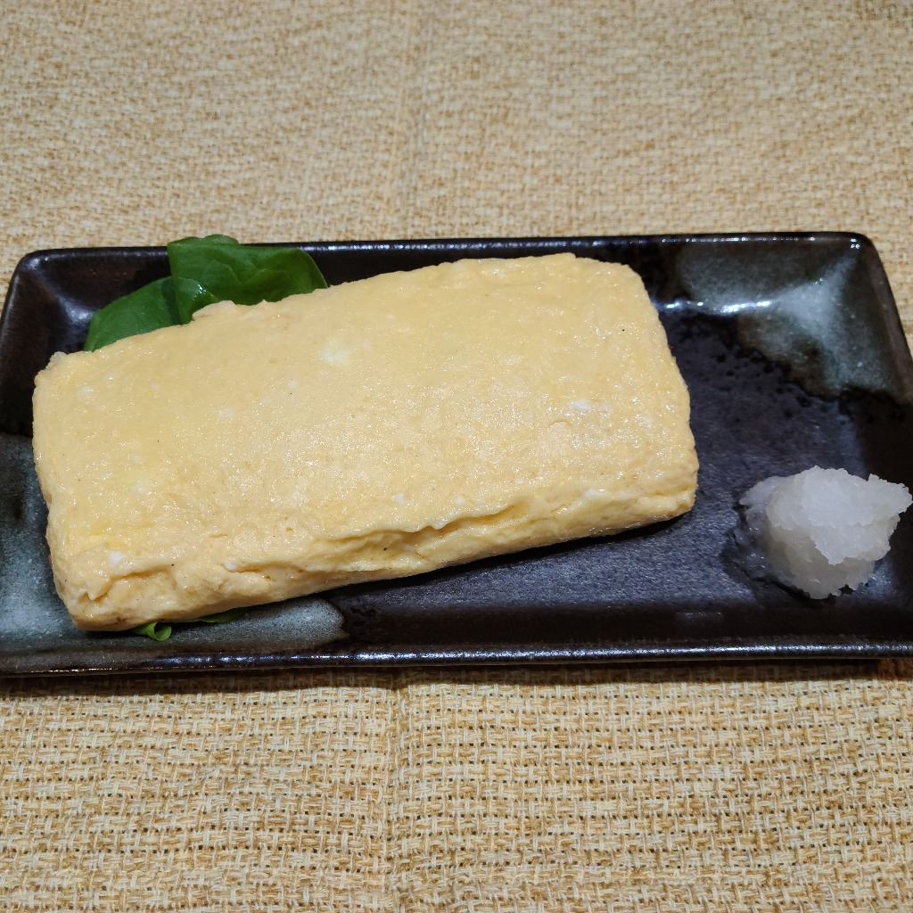 本巣市居酒屋本日紹介は定番メニューのだし巻き玉子です、鰹出しがききふわふわに仕上げお酒のお供に美味しくオススメです、グループの方、1人飲みの方にも是非味わって頂きたい一品です。