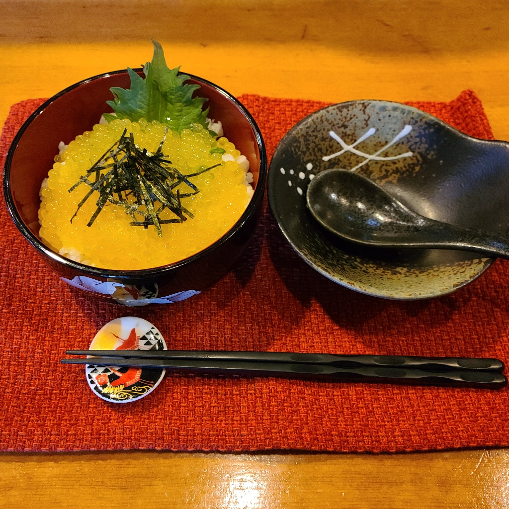 本巣市居酒屋本日紹介は他店ではあまりお目にかからない黄金イクラを使ったどんぶりです、岩魚、アマゴの魚卵のイクラで、普通のイクラよりさっぱりしたのが特徴で美味しくオススメです、グループの方、1人飲みの方にも是非味わって頂きたい一品です。