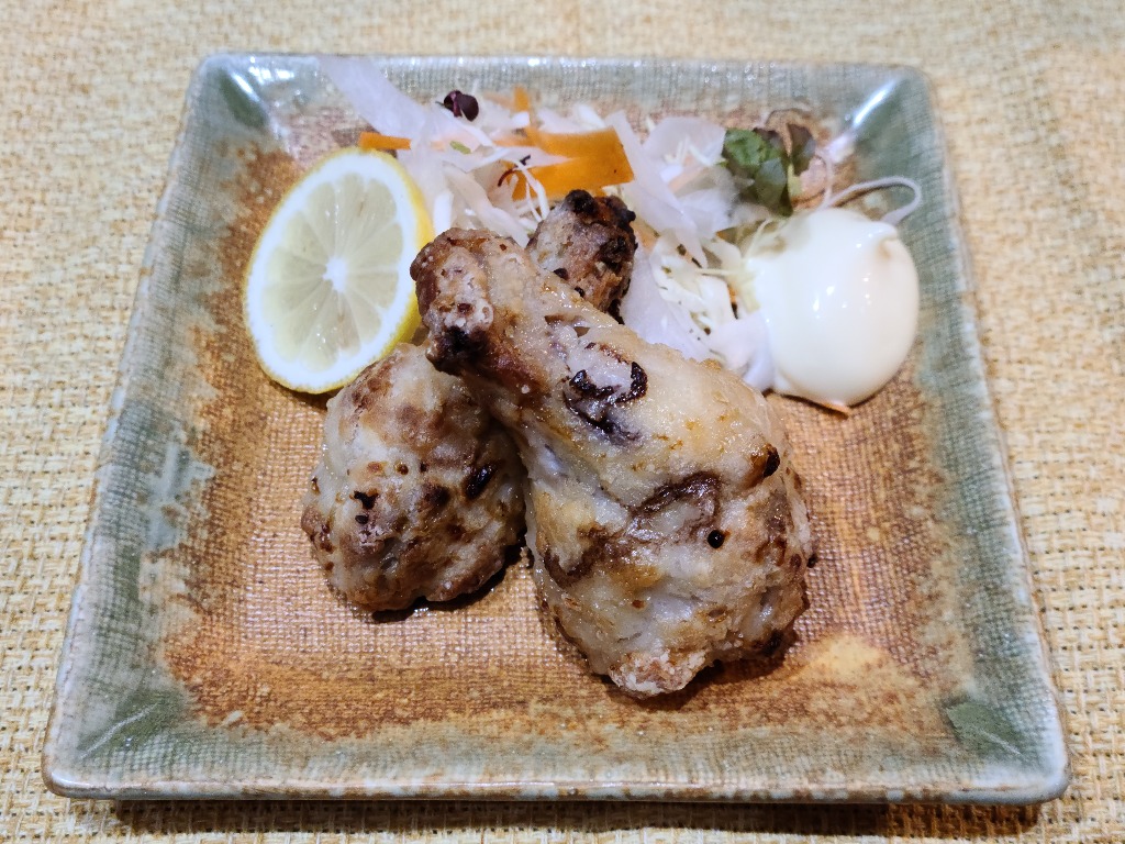 本巣市居酒屋本日紹介はオススメメニューのガーリックチキンです、塩麹、ニンニク塩、その他調味料で3日ほど漬け込み仕上げた一品です、柔らかくニンニクの香りがたまらず美味しくオススメです、グループの方、1人飲みの方にもお酒のお供是非味わって頂きたい商品です。