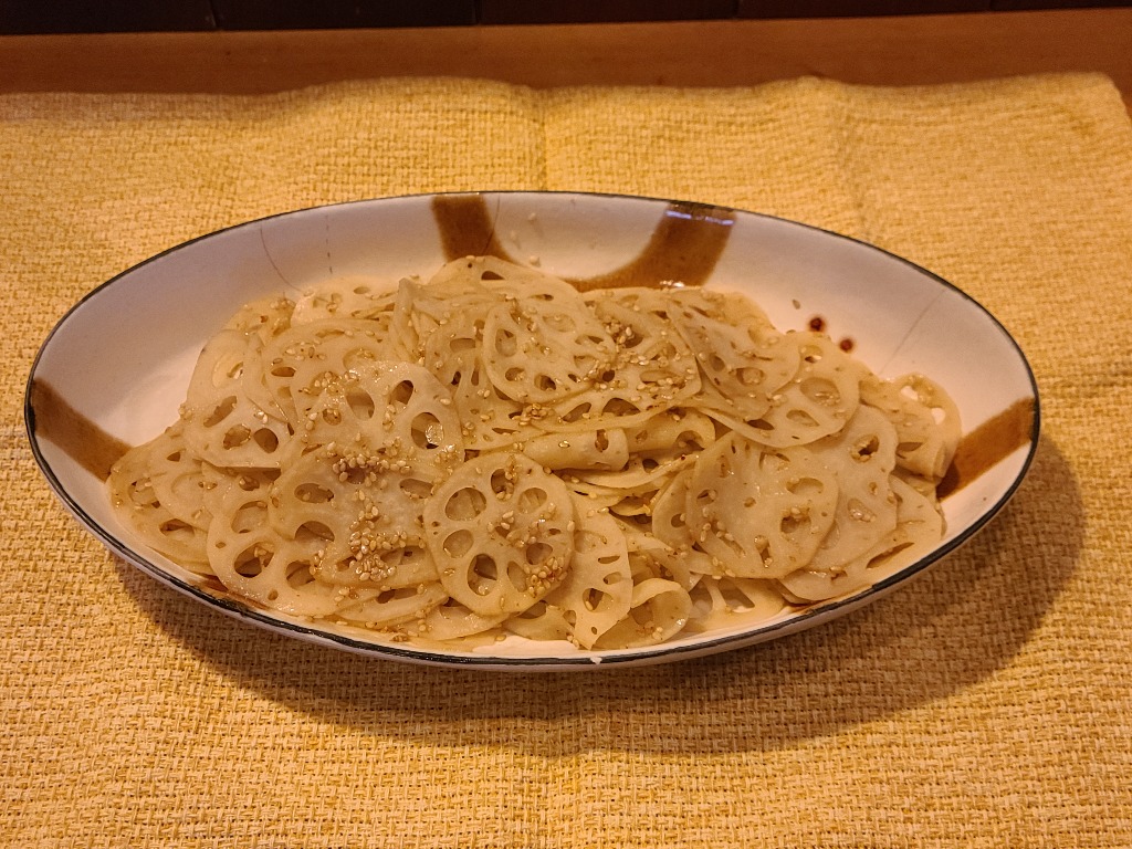本巣市居酒屋本日紹介はおばんざいの一品の蓮根の金平です、生の蓮根をスライスし当店特製出し、唐辛子、胡麻油で味付けしました、お酒のお供美味しくオススメです、グループの方、1人飲みの方にもいちど味わって頂きたい一品です。