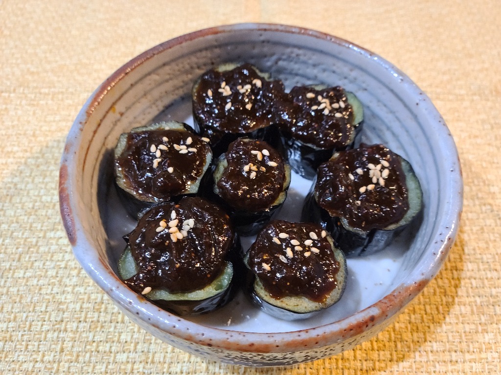 本巣市居酒屋本日紹介は定番メニューのなす田楽です、揖斐の田舎味噌で作った甘味噌を揚げたなすに乗せた一品です、風味豊かなみそで美味しくオススメです、グループの方、1人飲みの方にもいちど味わって頂きたい一品です。