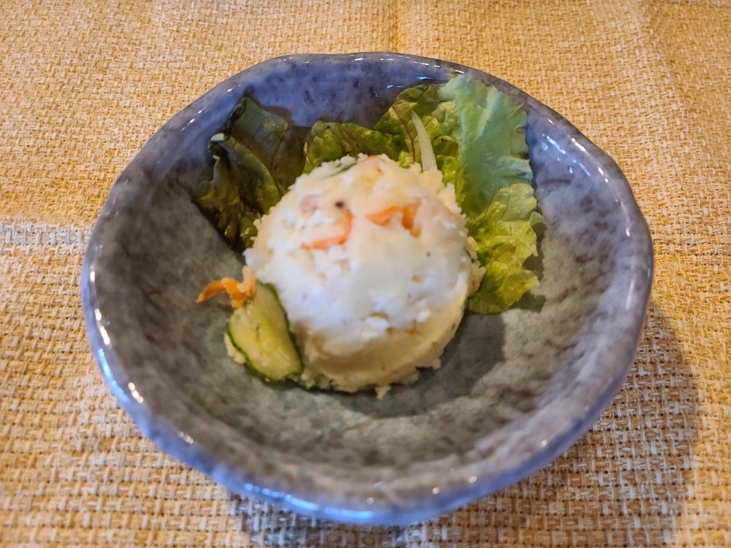 本巣市居酒屋本日紹介は自家栽培のじゃがいもキタアカリで作ったポテトサラダです、芋の甘味旨味がある品種で美味しくオススメです、グループの方、1人飲みの方にも是非いちど味わって頂きたい一品です。