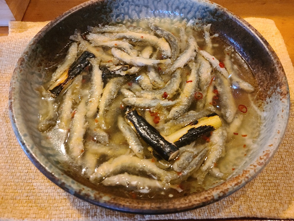 本巣市居酒屋本日紹介はおばんざい、天然稚鮎の南蛮漬けです季節先取りの一品です、価格一品380円で美味しくオススメです、グループの方、1人飲みの方にもお酒🍶のお供にいちど味わって頂きたい商品です。