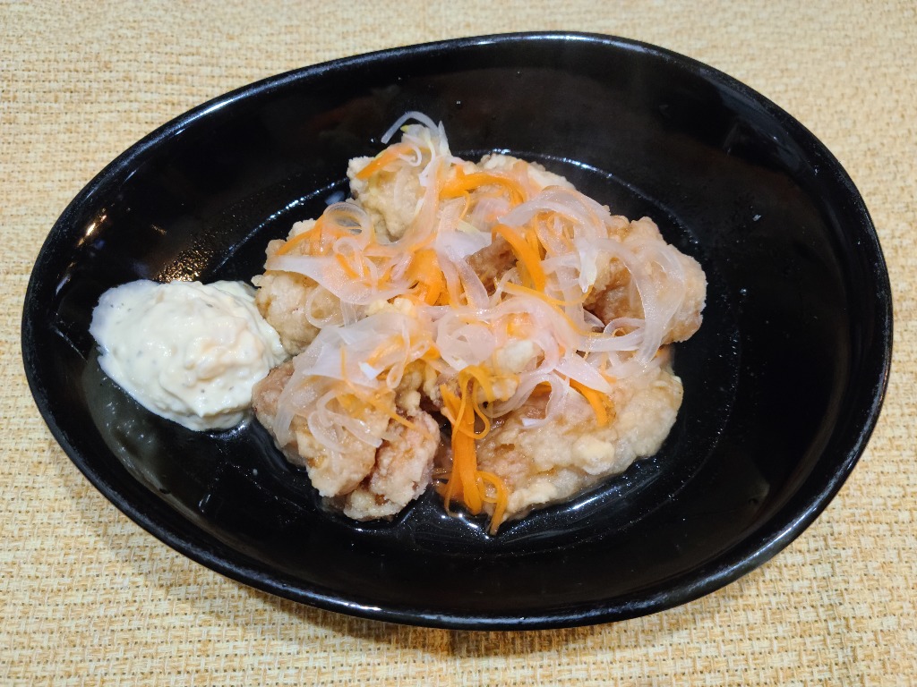本巣市居酒屋本日は、定番メニューの鶏南蛮です、鶏唐揚げに野菜甘酢を掛けてタルタルソースを添えた一品です、甘酢、タルタルソースの調和が美味しくオススメです、グループの方、1人飲みの方いちどお試し下さい。