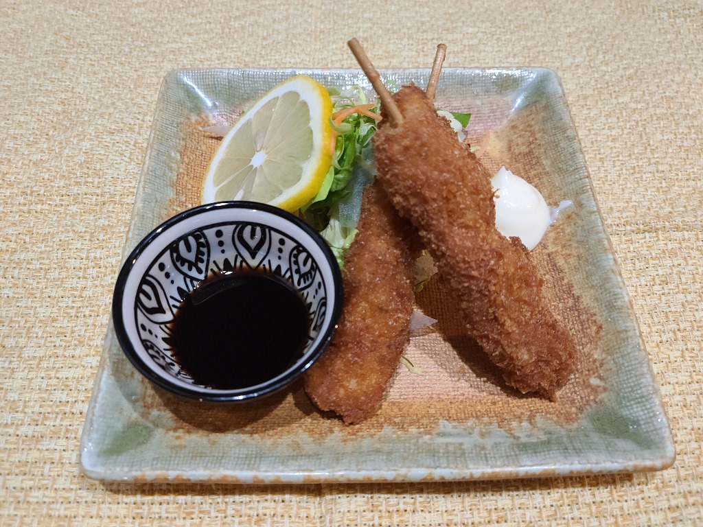 本巣市居酒屋今回紹介は、定番メニューの串カツです、価格480円と手頃になってます、田舎味噌で作った甘味噌、ソースから選べオススメで美味しく頂けます、グループの方、1人飲みの方もいちど味わって見て下さい。