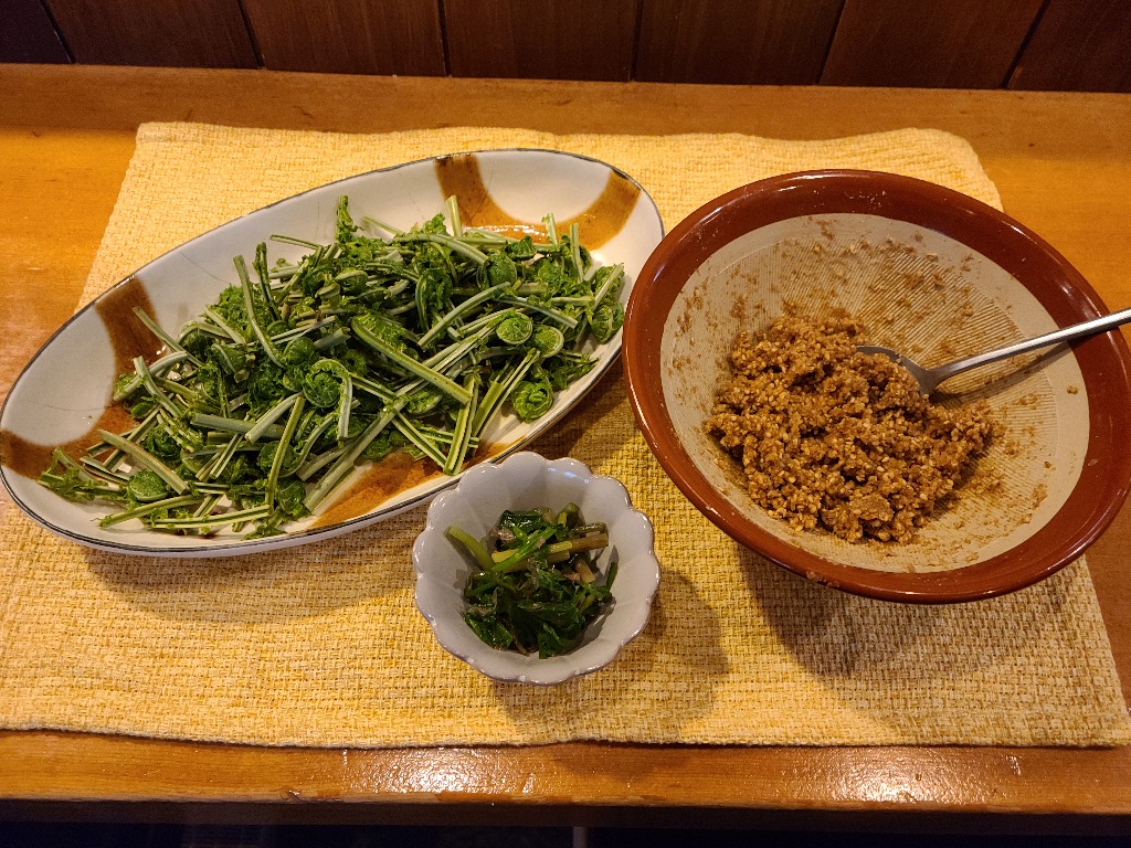 本巣市居酒屋本日紹介は初春の味覚こごみごま和えです、すり鉢でいりごまをすり、そこに調味料を加え、固めに仕上げます、こごみを茹で冷水で冷やし水切りし、提供直前に和えます、そうする事でこごみから水気が出ないため美味しく頂けオススメの一品となります、グループの方、1人飲みの方にも是非いちど味わって見て下さい。