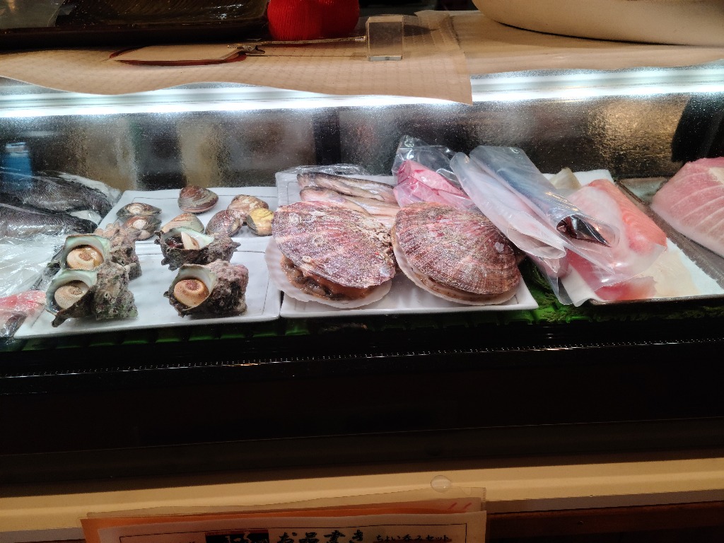 本巣市居酒屋本日のネタケースです、お刺身は本マグロ、シマアジ、ヒラメ、サーモン、真鯛、焼き魚は、ノドグロ、メバル、貝類はサザエ、蛤、新メンバーの殻付きホタテです、ホタテバターがオススメで美味しく頂けます、グループの方、1人飲みの方にも楽しんでいただける商品となっています、いちど味わって見て下さい。