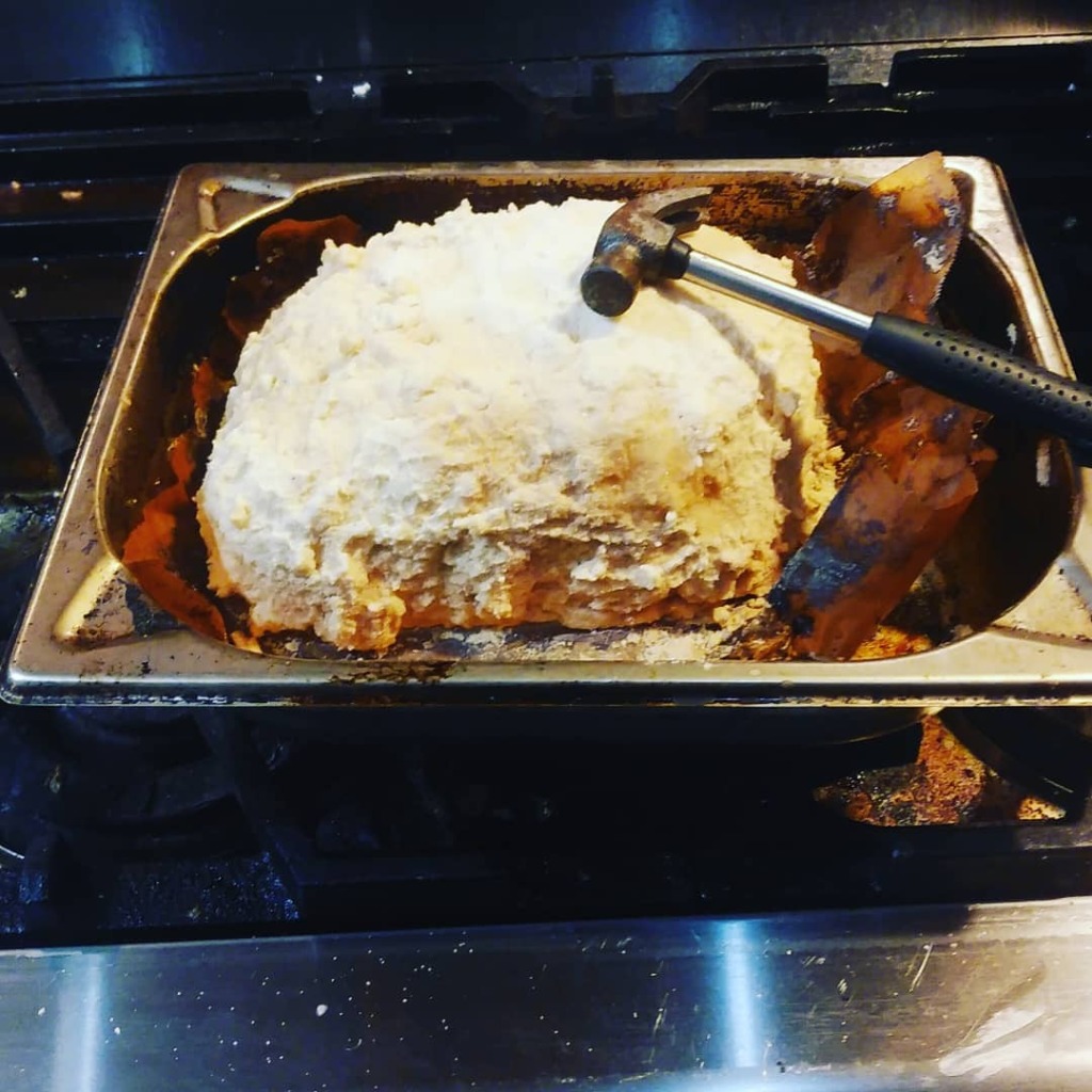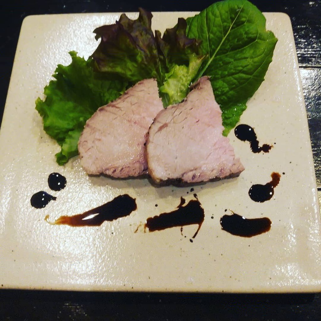 本巣市居酒屋今回紹介は豚ロース塩釜焼きです、要予約となります、塩卵白を混ぜ合わせ豚ロースを包み込みオープンで焼き上げます、バルサミコ酢をとろみがつくまで煮詰めソースにします、豚肉とソースの相性がピッタリ美味しくオススメの一品です、3から4人前3800円、お客様に割っていただき切り分けます、おばんざい等も充実1人飲みの方にも気軽にお越しいだだけるようスタッフ共々お待ちしております、是非一度お越しください。