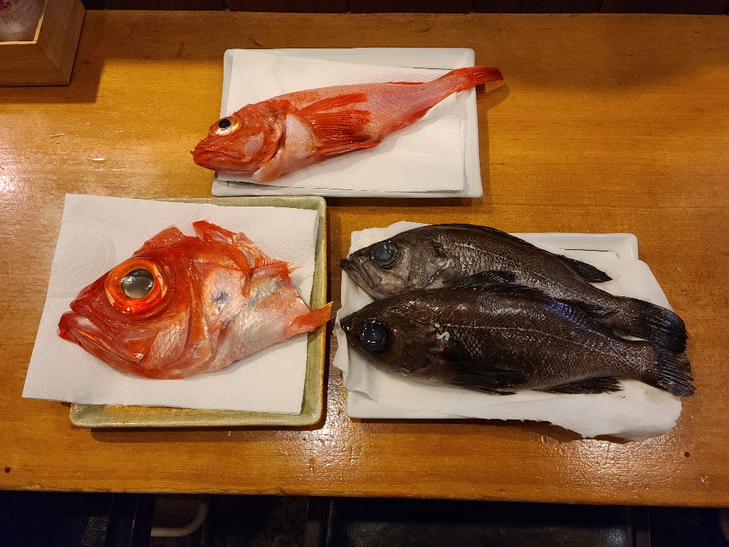 本巣市居酒屋今回は本日の魚たちです、キンキ、メバル、金目鯛かぶとです、煮付け、塩焼き、どちらでも美味しくオススメとなってます、キンキ1.580円、メバル1.180円、金目鯛かぶと880円となっております、是非一度お試し下さい、カウンターもあります、お一人様でも気軽にお越しください。