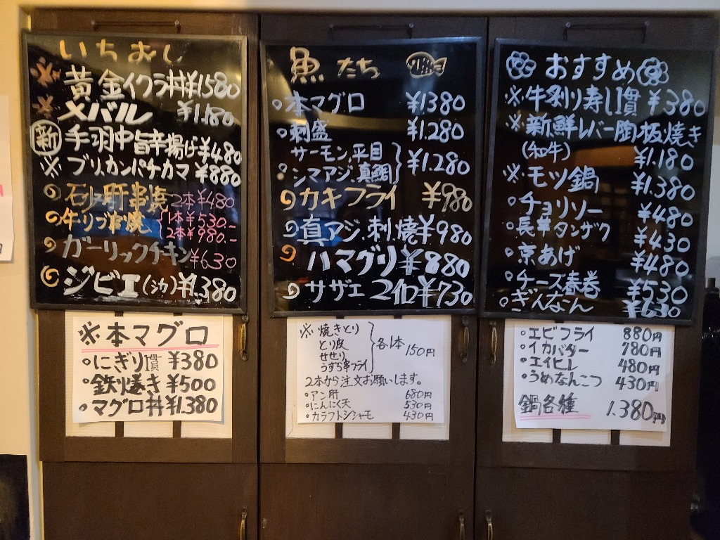 本巣市居酒屋今回紹介は当店背面のブラックボードです、オススメ商品を記載しています、色々美味しく頂ける用工夫し提供出来るようにと考えています、1人飲みの方にも手頃となっております、是非一度お試し下さい。