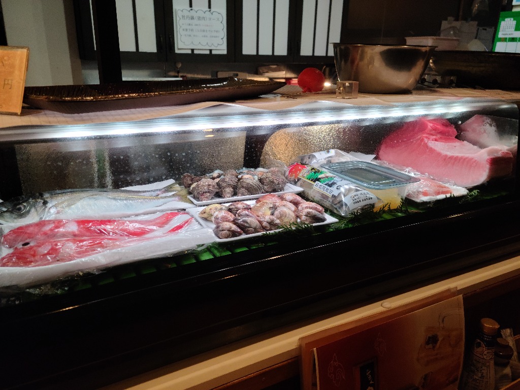 本巣市居酒屋今回紹介するのは、本日のネタケースです、本マグロ、赤身、中とろ、大とろと美味しい所、お刺身各種、黄金イクラ、軍艦用うずら卵、カキ、サザエ、蛤、キンキ、真あじです、オススメの商品です、1人飲みのお客様も満足して頂けると思います、一度お試し下さい。