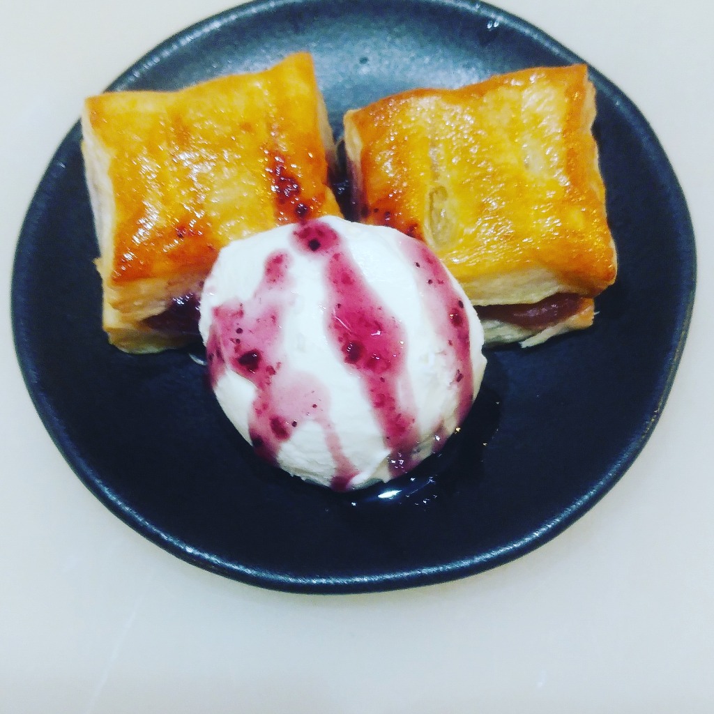 本巣市居酒屋今回紹介するのは、手作りアップルパイです、リンゴ🍎を赤ワイン、グラニュー糖で煮込み、パイ生地で挟み焼き上げた一品です、バニラアイスとの相性抜群トッピングソースもチョコレート、ストロベリー、ブルーベリーがあり、女性の方も美味しいとの声がありオススメです、1人飲みのお客様も最後のデザートとしても良いです、一度お試し下さい。