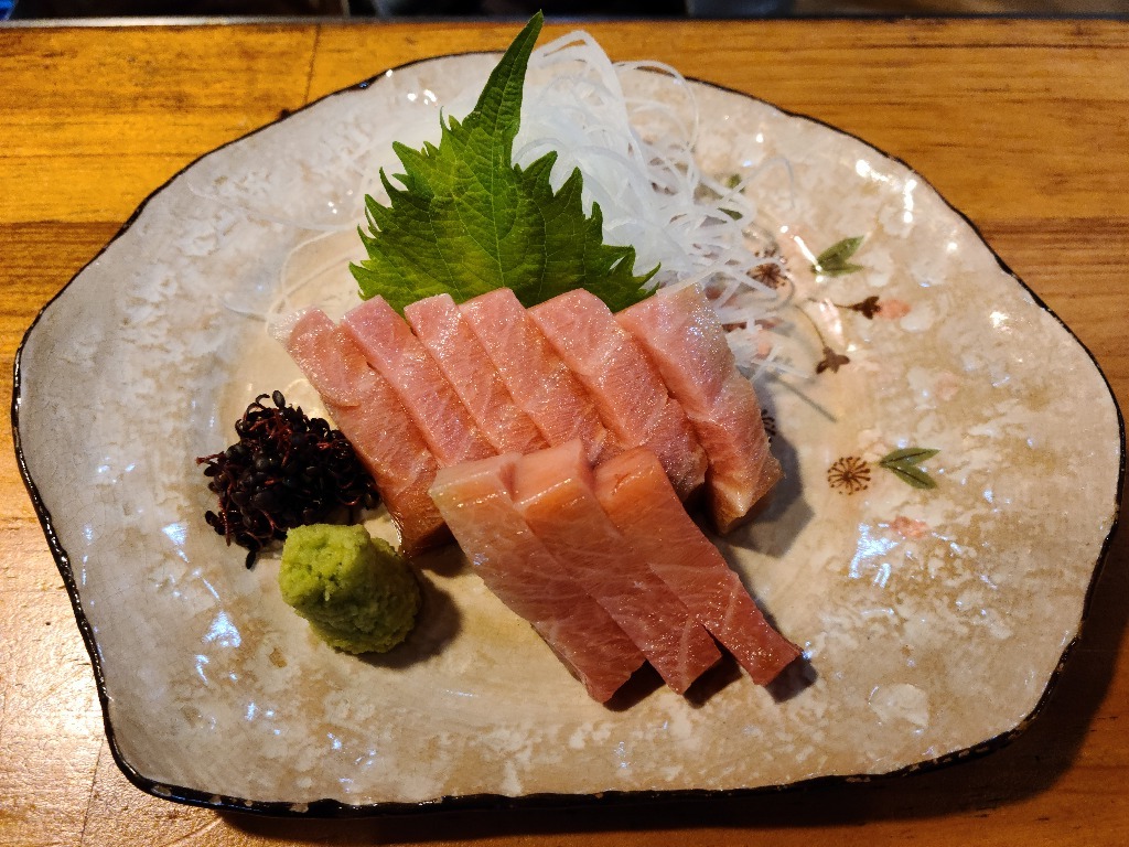 本巣市居酒屋、今回紹介は、本マグロお刺身です、ちょーオススメハラミの所、赤身、中とろ、大とろ美味しい油最高です、価格1380円、その他おばんざい各種380円気楽に1人飲みもできます、是非一度お試し下さい。